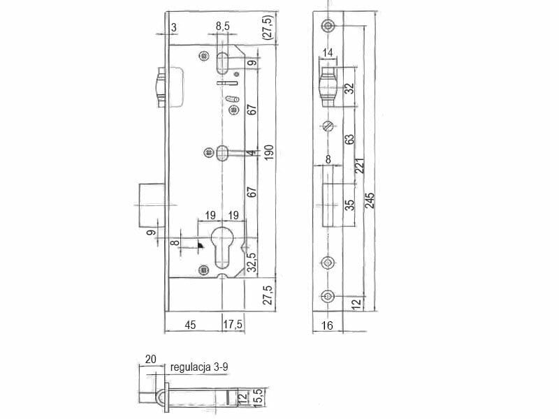 KFV Zamek główny do drzwi KFV 51 czoło 16mm