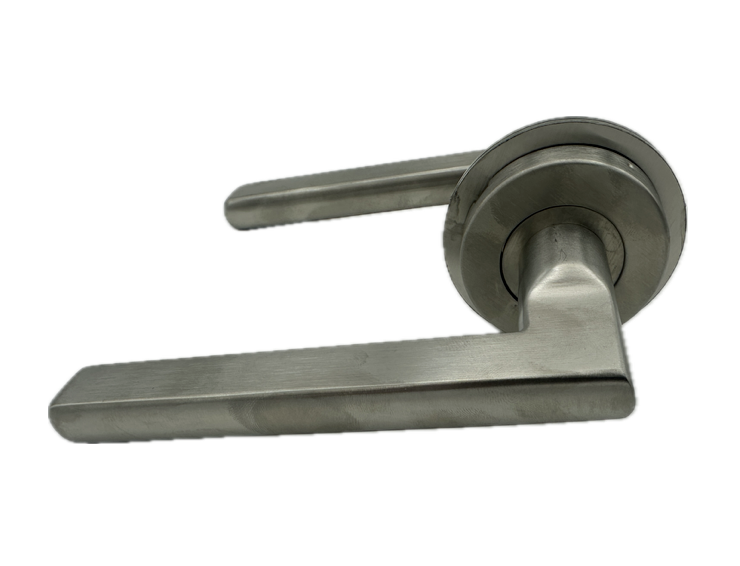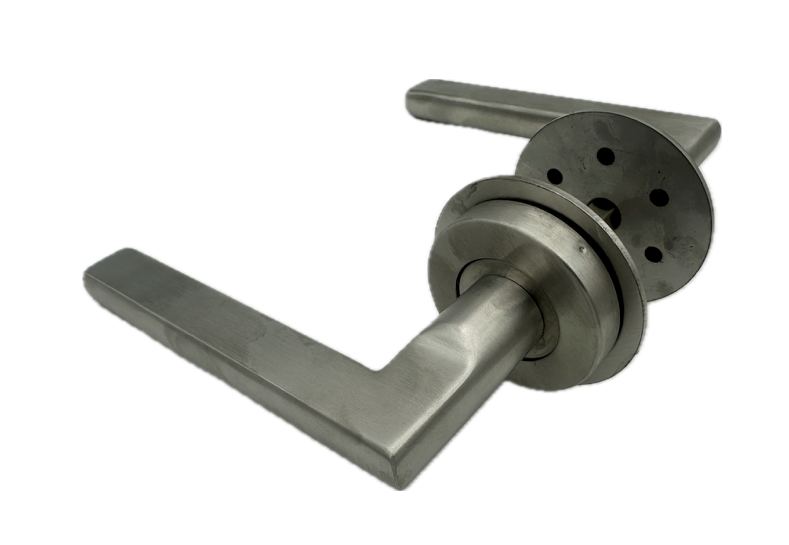 - klamka do drzwi La Port, śruby montażowe pod kątem a nie w jednej linii z rękojeścią