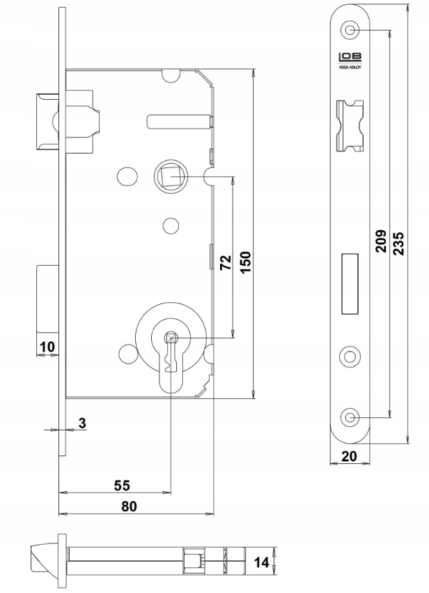 LOB Zamek wpuszczany 72/55 WKŁADKA