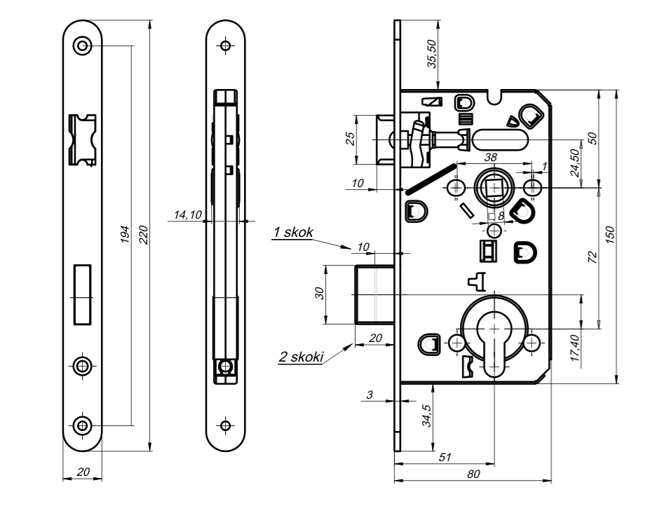 Zamek uniwersalny przeznaczony do drzwi lewych lub prawych (aby zmienić stronę zamka wystarczy obrócić język o 180 stopni, wcisnąć język zamka i przekręcić go w odpowiednią stronę)