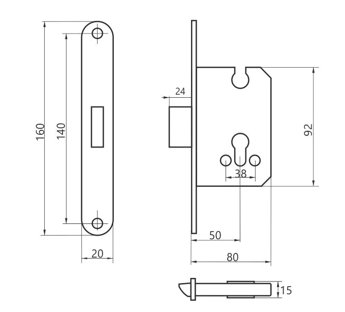 Zamki wpuszczane przeznaczone są do zamontowania w środku drzwi, we wcześniej przygotowanych do tego otworach.