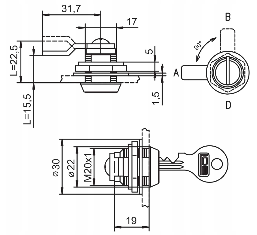 - wymiary otworu montażowego – 17 / 22 mm