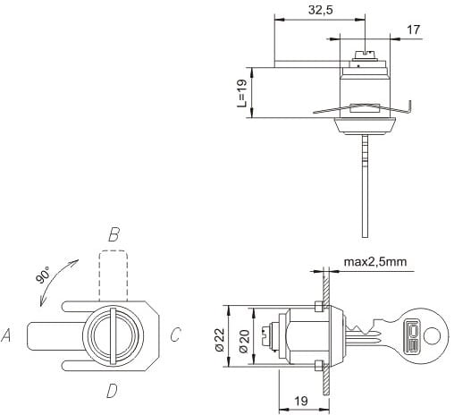 • zamek cylindryczny Lob  do szafek ubraniowych, szaf, kasetek, skrzynek na listy