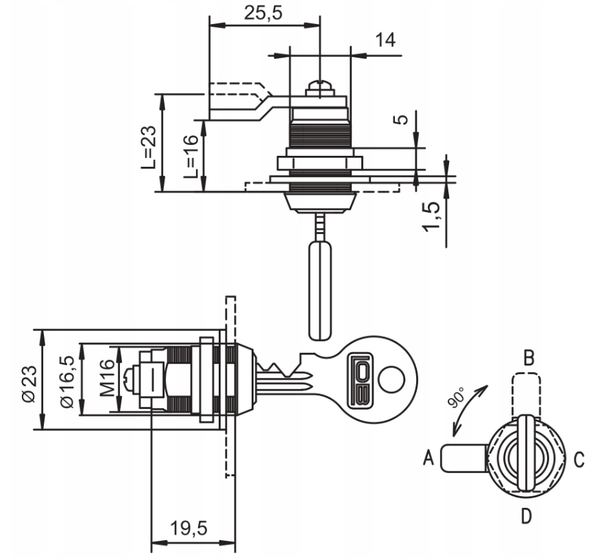 - w zestawie – zamek, nakrętka mocująca i dwa kluczyki