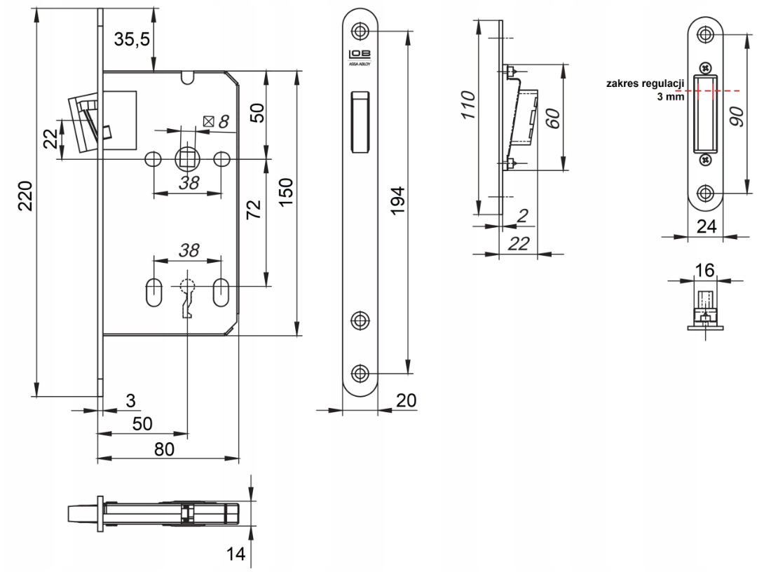 Zamek dostępny z zaczepem regulowanym i z zaczepem bez regulacji.