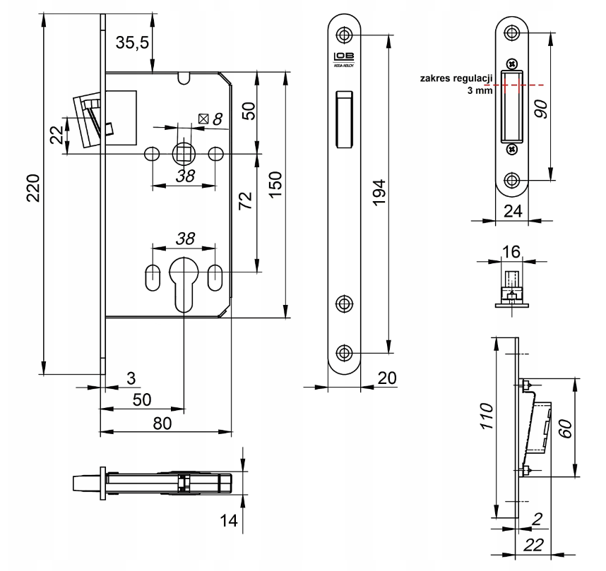 Zamek dostępny z zaczepem regulowanym i z zaczepem bez regulacji.