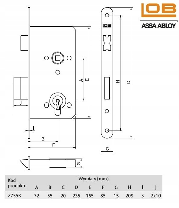 LOB Zamek wpuszczany 72/55 wkładka uniwersalny