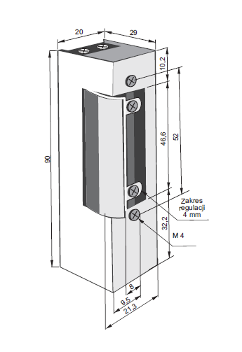 Elektrozaczep zwymiarowany na dołączonym rysunku.