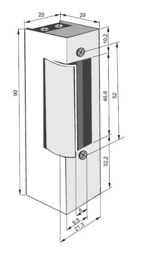 Elektrozaczep zwymiarowany na dołączonym rysunku.