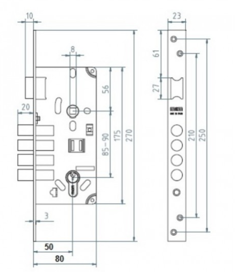 Zamek wpuszczany do drzwi drewnianych lub metalowych