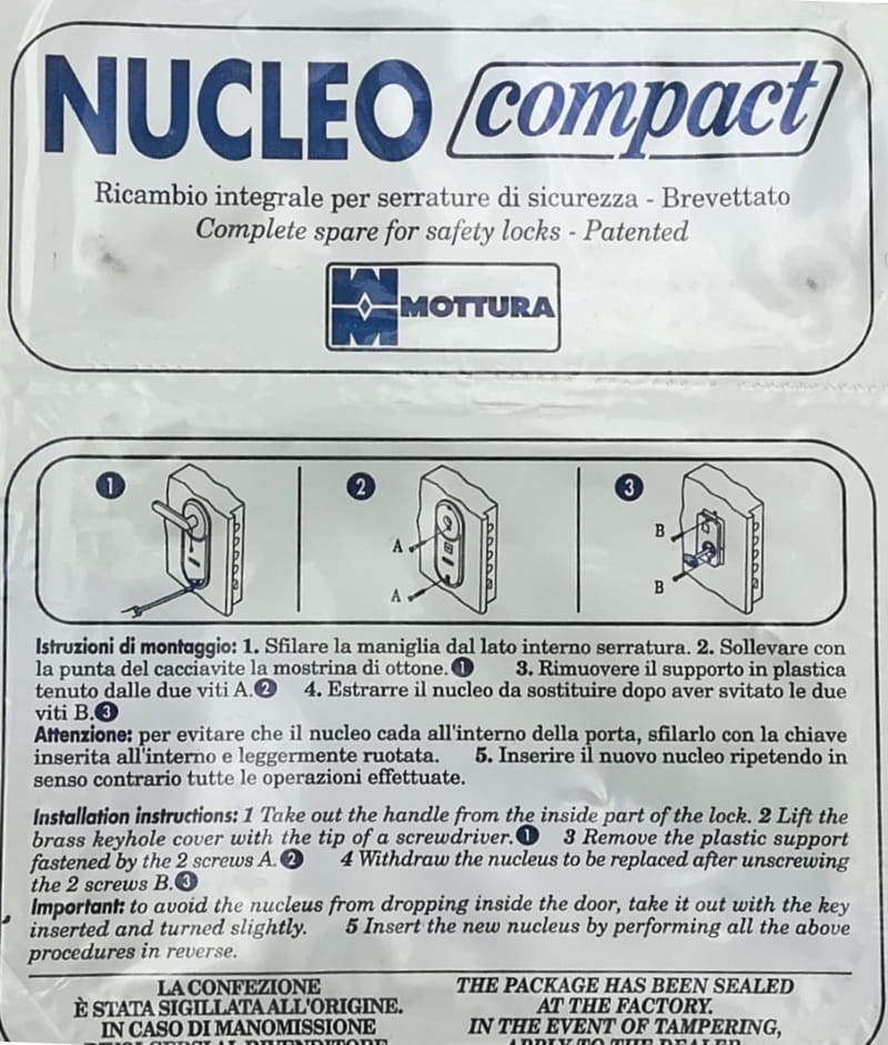 Zestaw zapadek i kluczy do zamka Mottura, model Compact: