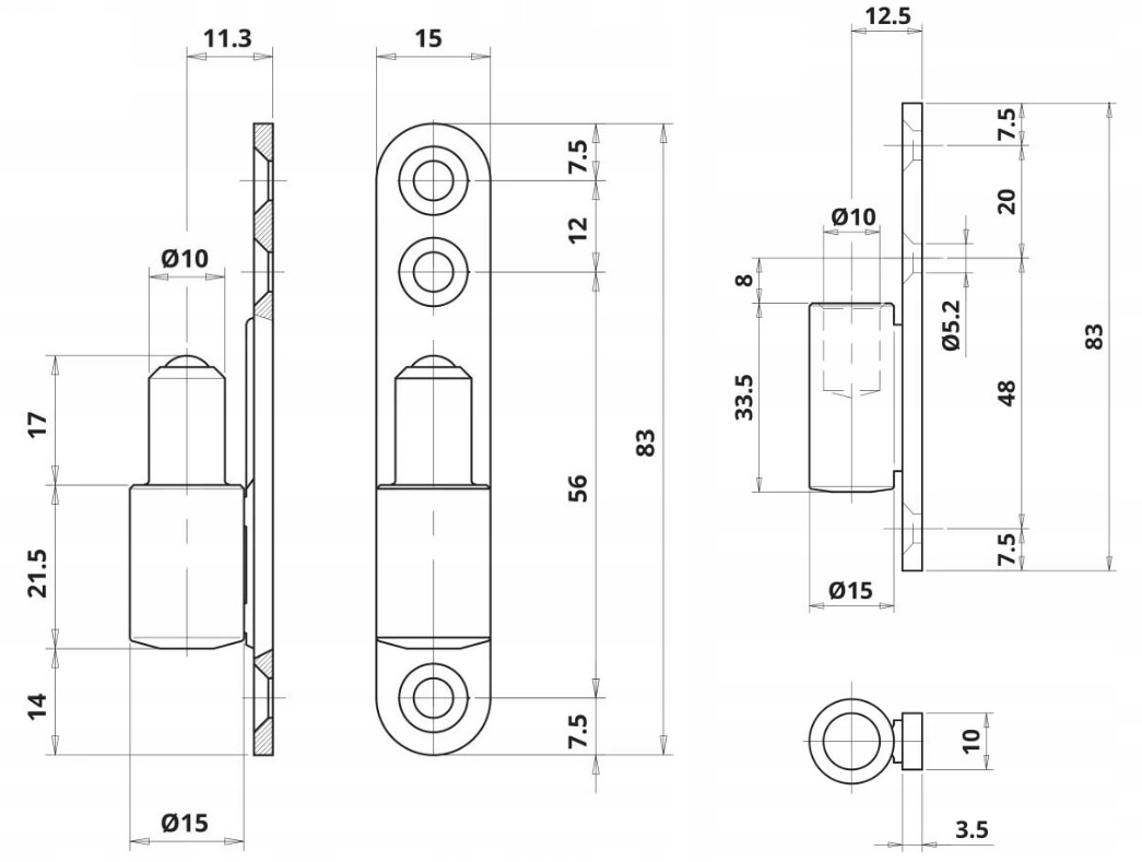 Zawias przy dolnej części posiada kulkę dzięki której zawias pracuje płynniej oraz lepiej przenosi obciążenie.