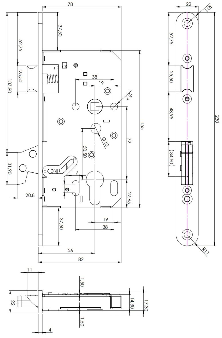 Zamek wpuszczany hakowy ROM 2