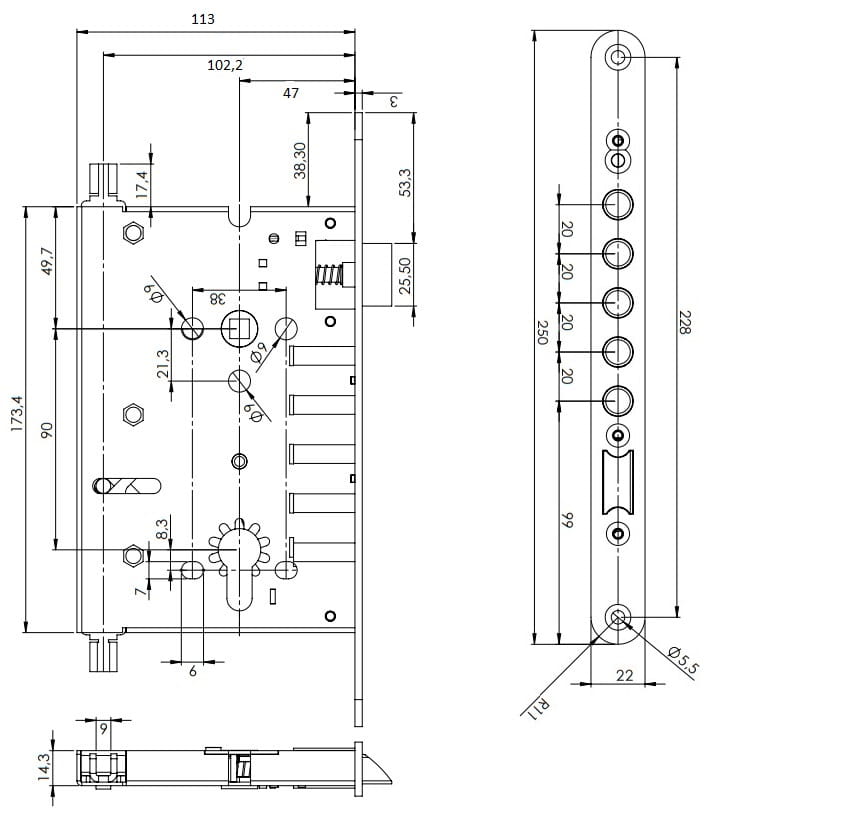 – Zamek atywłamaniowy główny ROM 8, trzpieniowy, rozporowy