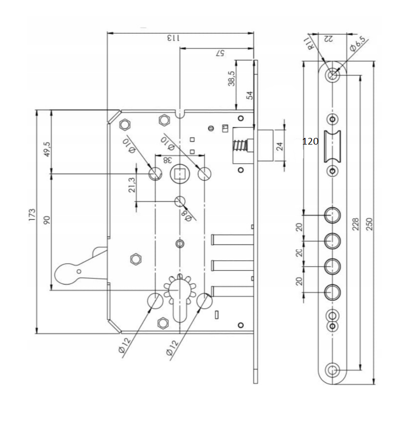 ROM C5 HUZAR Zamek do drzwi PTZ 4 bolce