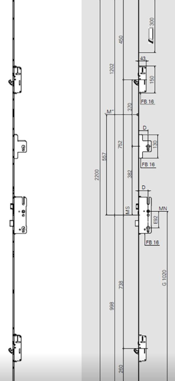Ryglowanie zamka : podniesienie klamki do góry powoduje wysunięcie rygla zamka głównego oraz wysunięcie rygli  ,jednokrotne przekręcenie klucza powoduje blokadę klamki
