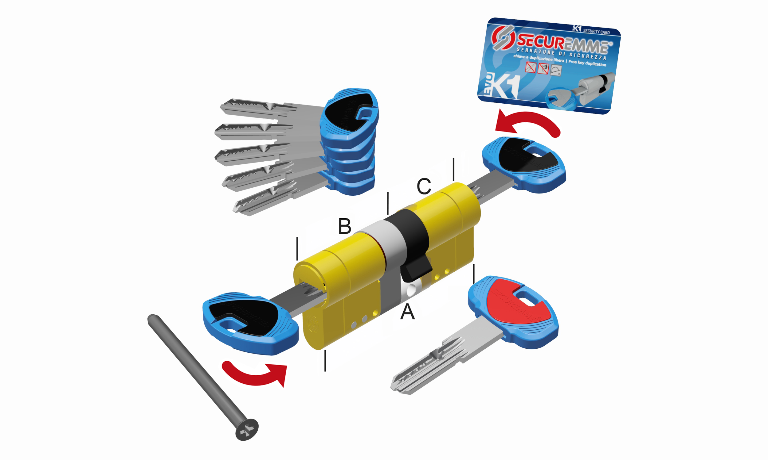 – System jednego klucza- funkcja dająca możliwość otwierania jednym kompletem kluczy więcej niż jedną wkładkę