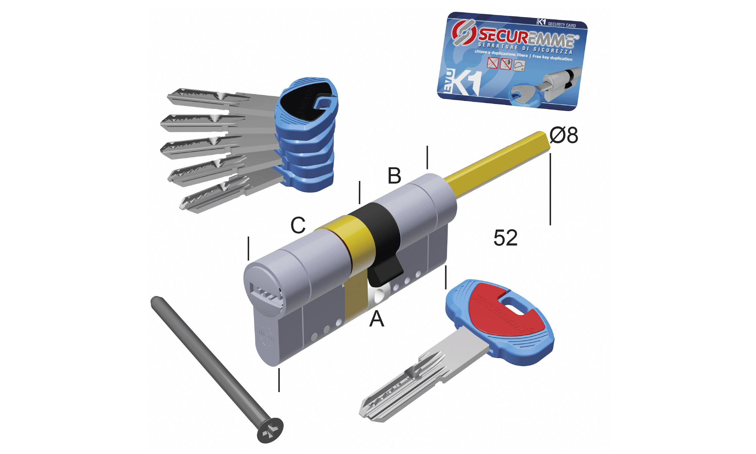 – Anti-Snap funkcja kontrolowanego złamania, zaletą tego rozwiązania jest pewność że w przypadku ataku mechanicznego ulegnie odłamaniu tylko cześć przednia 10mm. To rozwiązanie znacznie wydłuża lub uniemożliwia dotarcie osobie niepowołanej do serca wkładki (zabieraka).