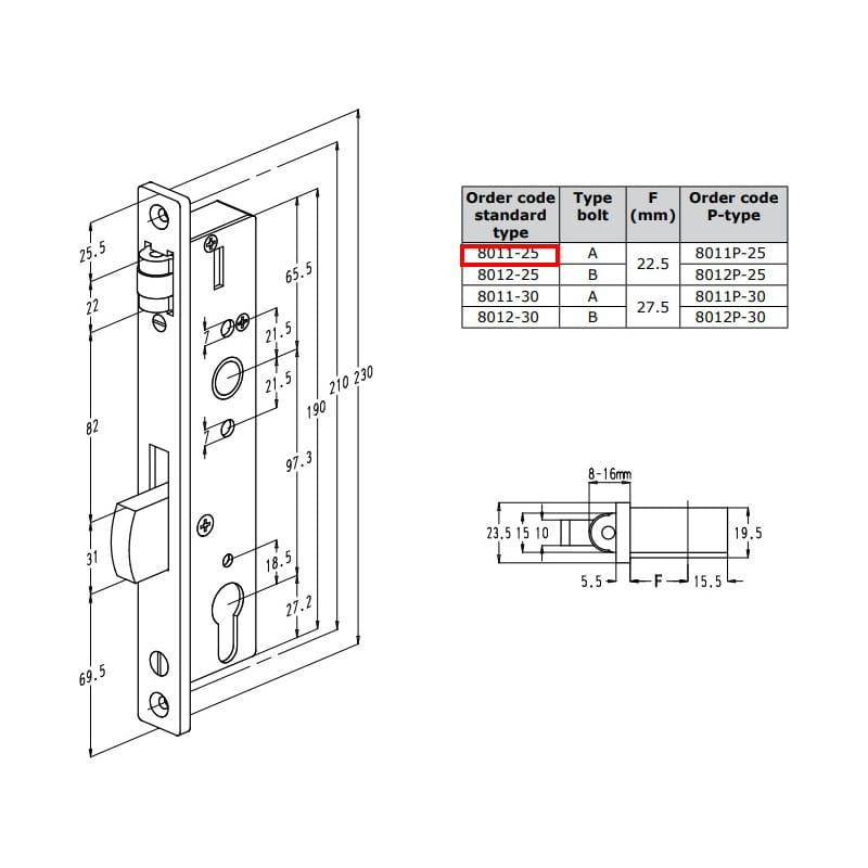 Zamek wpuszczany uniwersalny L/P do drzwi zewnętrznych i wewnętrznych o masie do 100 kg w obiektach użyteczności publicznej.