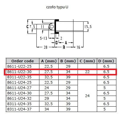 UWAGA! Dormas zamka liczony bez grubości blachy czołowej!!!
