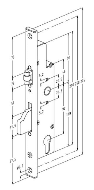 Zamek wpuszczany uniwersalny L/P do drzwi zewnętrznych i wewnętrznych o masie do 100 kg w obiektach użyteczności publicznej.