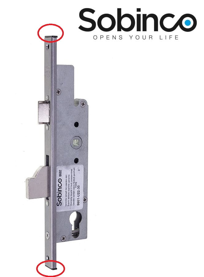 Zamek jest dostraczany bez czarny zaslepek, zaslepki widoczne w czerwonym kółku na foto nr 2.