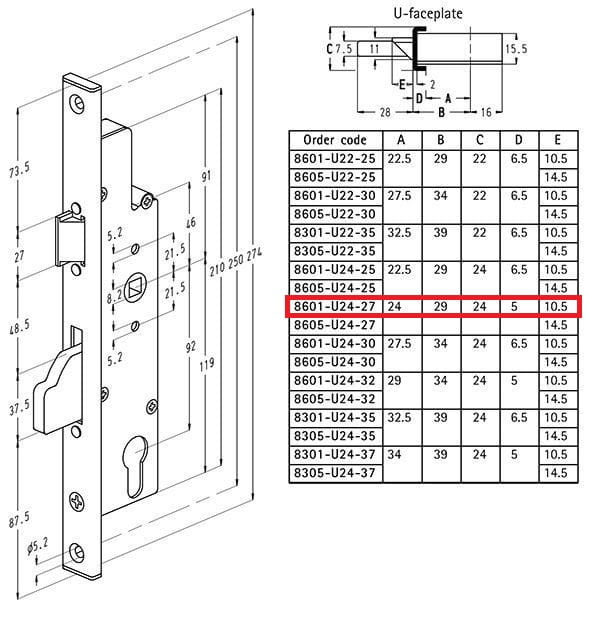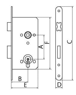Zamek wpuszczany uniwersalny L/P do drzwi zewnętrznych i wewnętrznych o masie do 100 kg w obiektach użyteczności publicznej.
