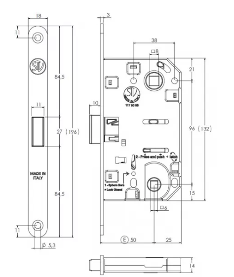 Zamek magnetyczny posiada otwór na trzpień klamki 6 mm oraz otwór na blokadę WC. Przeznaczony jest do zastosowania w wewnętrznych drzwiach drewnianych, bezprzylgowych.