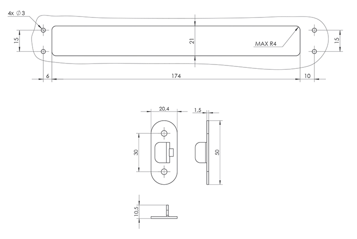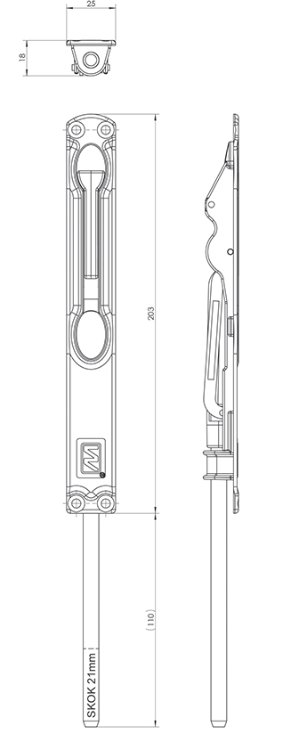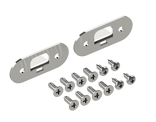 W skład kompletu wchodzi podstawa rygla z zaczepami i wkrętami.