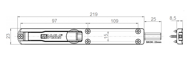 WALA Rygiel wpuszczany WN2 komplet 2szt