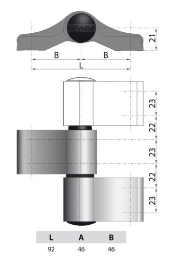 WALA Zawias dwuczęściowy symetryczny 92 mm