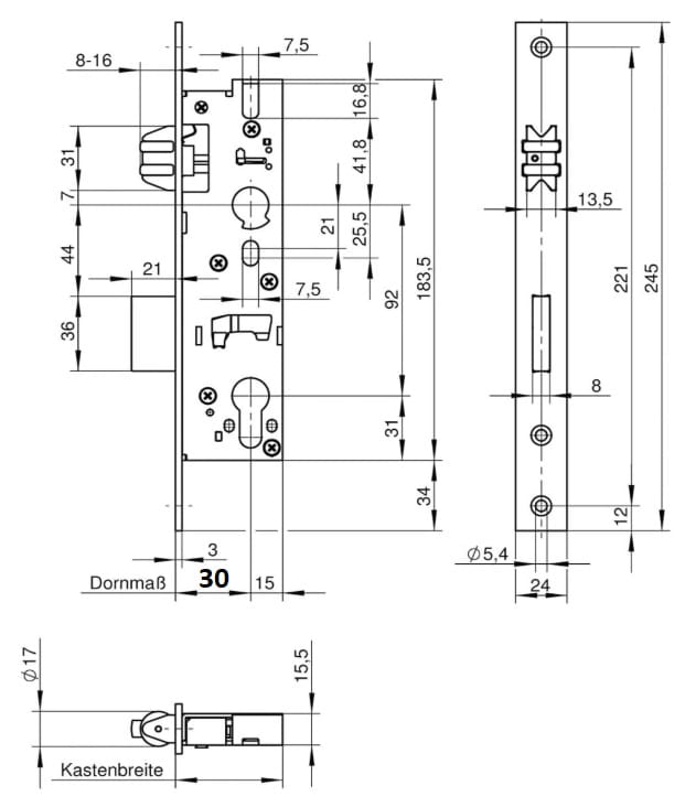 Zamek wpuszczany uniwersalny L/P do drzwi zewnętrznych i wewnętrznych również o masie powyżej 200 kg w obiektach użyteczności publicznej.