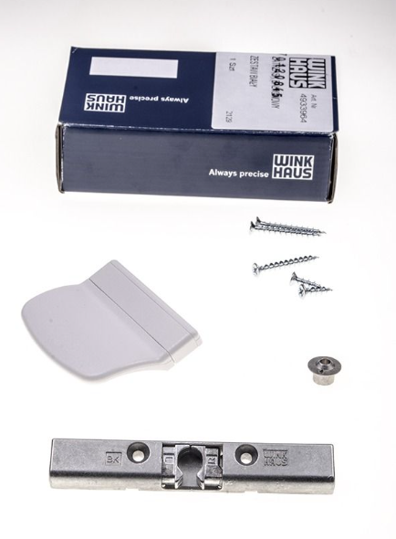 – uchwytu w kolorze białym – montowanego po stronie zewnętrznej drzwi (wraz z wkrętami),