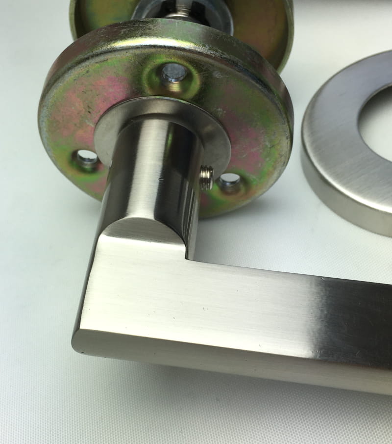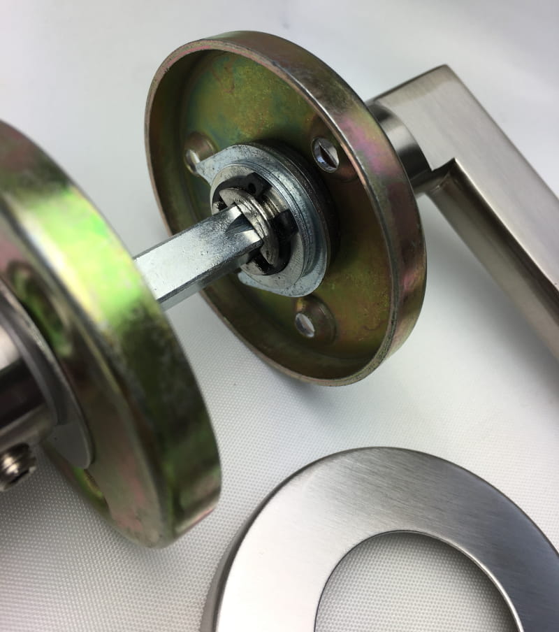 Posiada mechanizm sprężynowy zapobiegający opadaniu klamki