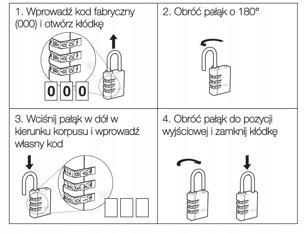 - Kombinacja Szyfru: Umożliwia ustawienie jednej z ponad 1000 kombinacji przy użyciu łatwo dostępnych pokręteł.