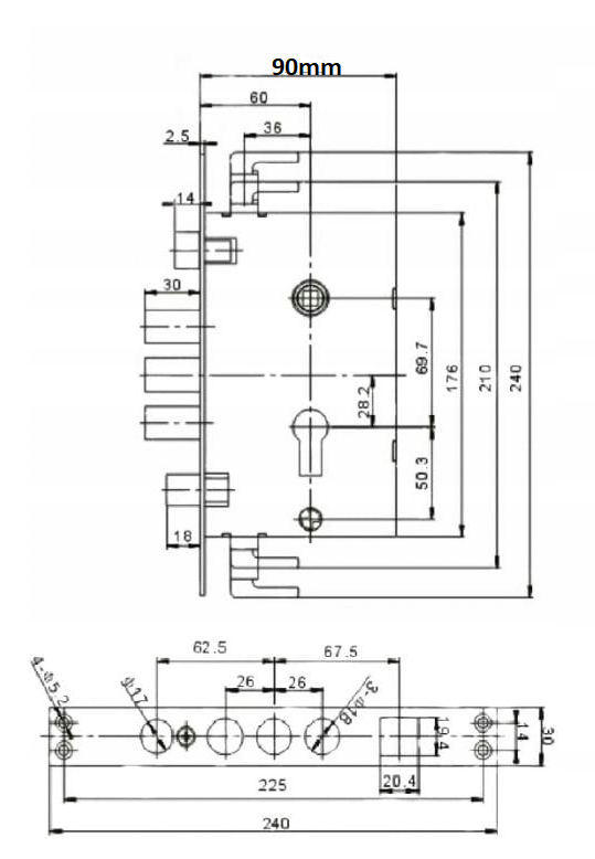 Zamek rozporowy wpuszczany Model 08C ( zw4 )