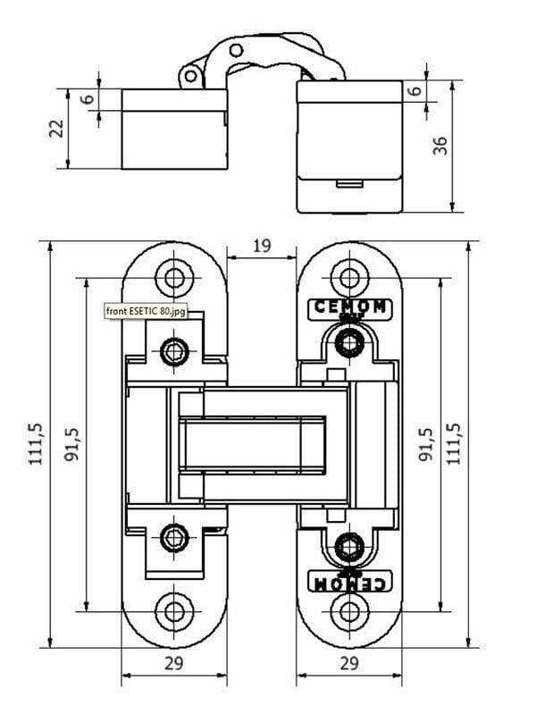 - Główne wymiary: wysokość 111,5 mm, szerokość 29 mm, głębokość części drzwiowej 36 mm, głębokość części ościeżnicowej 21 mm,